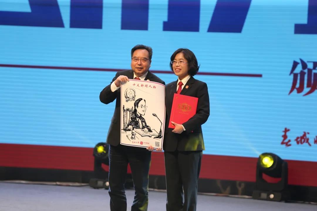 颁奖典礼现场,段莉萍走上领奖台,云南省高级人民法院党组成员、副院长滕鹏楚为她颁奖。
