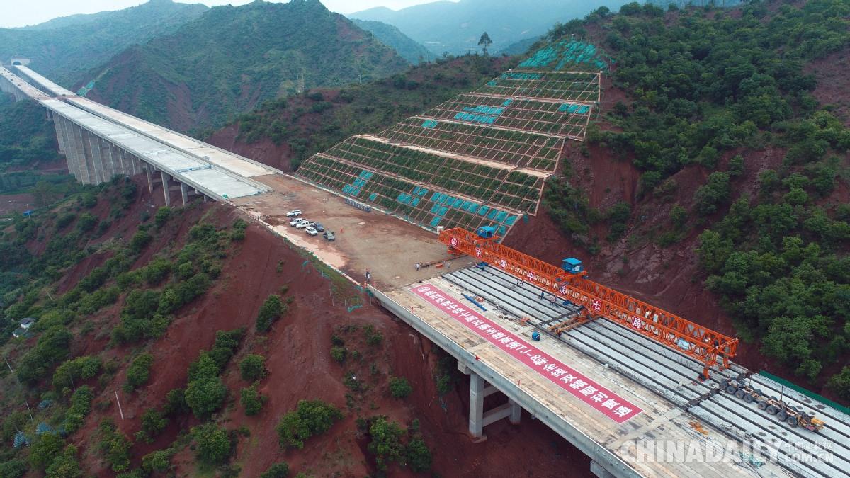玉楚高速高墩数量最多的标段全线贯通(李准 摄)