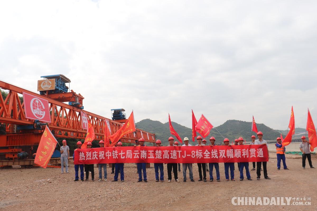 8月10日下午,随着阿姑特大桥右线最后一片预制T梁架设完成,玉(溪)楚(雄)高速公路TJ-8标实现全线贯通,标志着离玉楚高速公路全线通车目标更近一步。